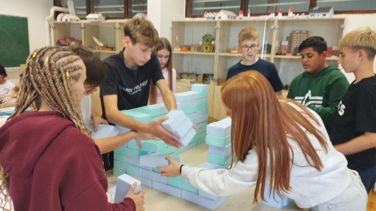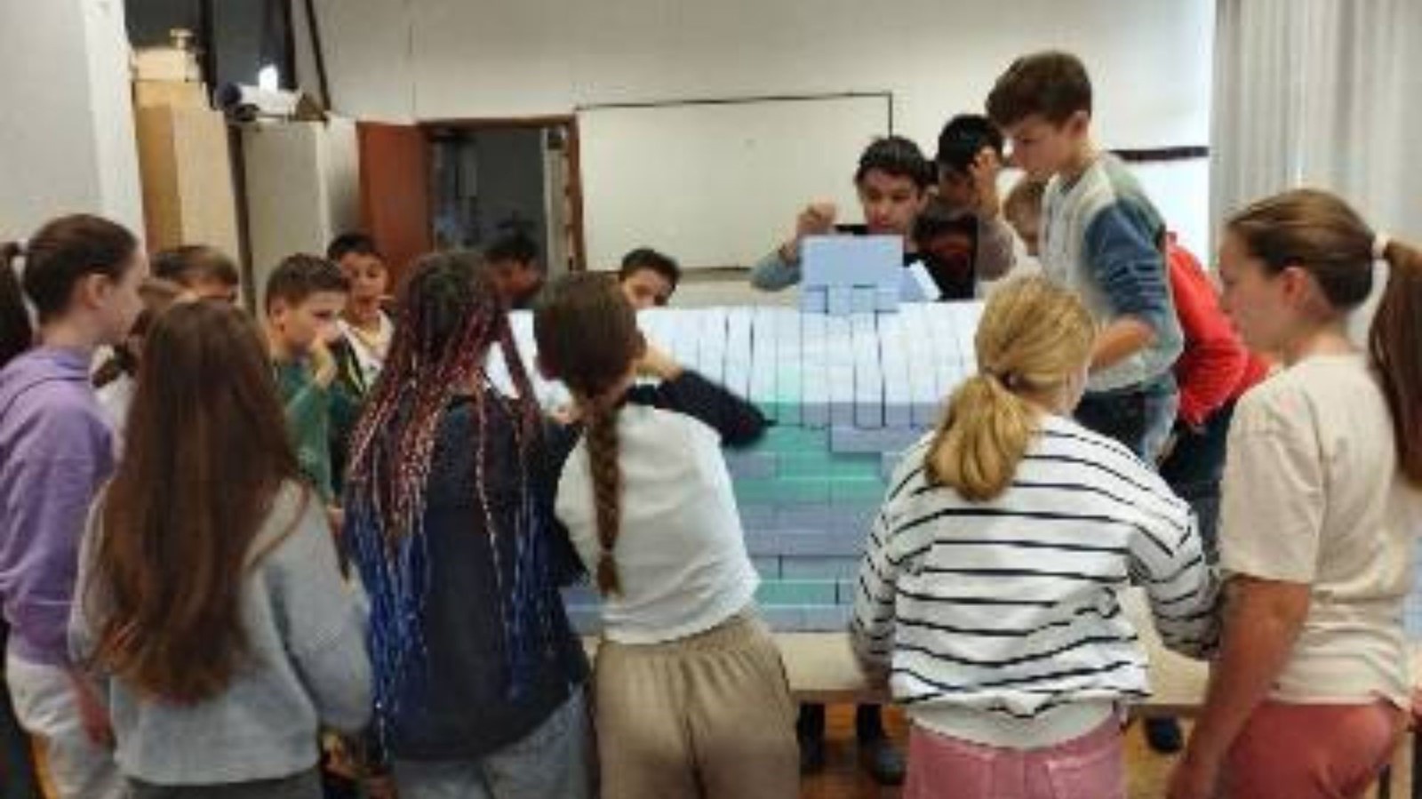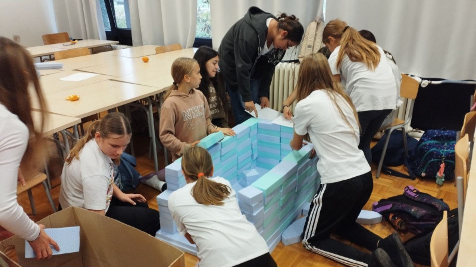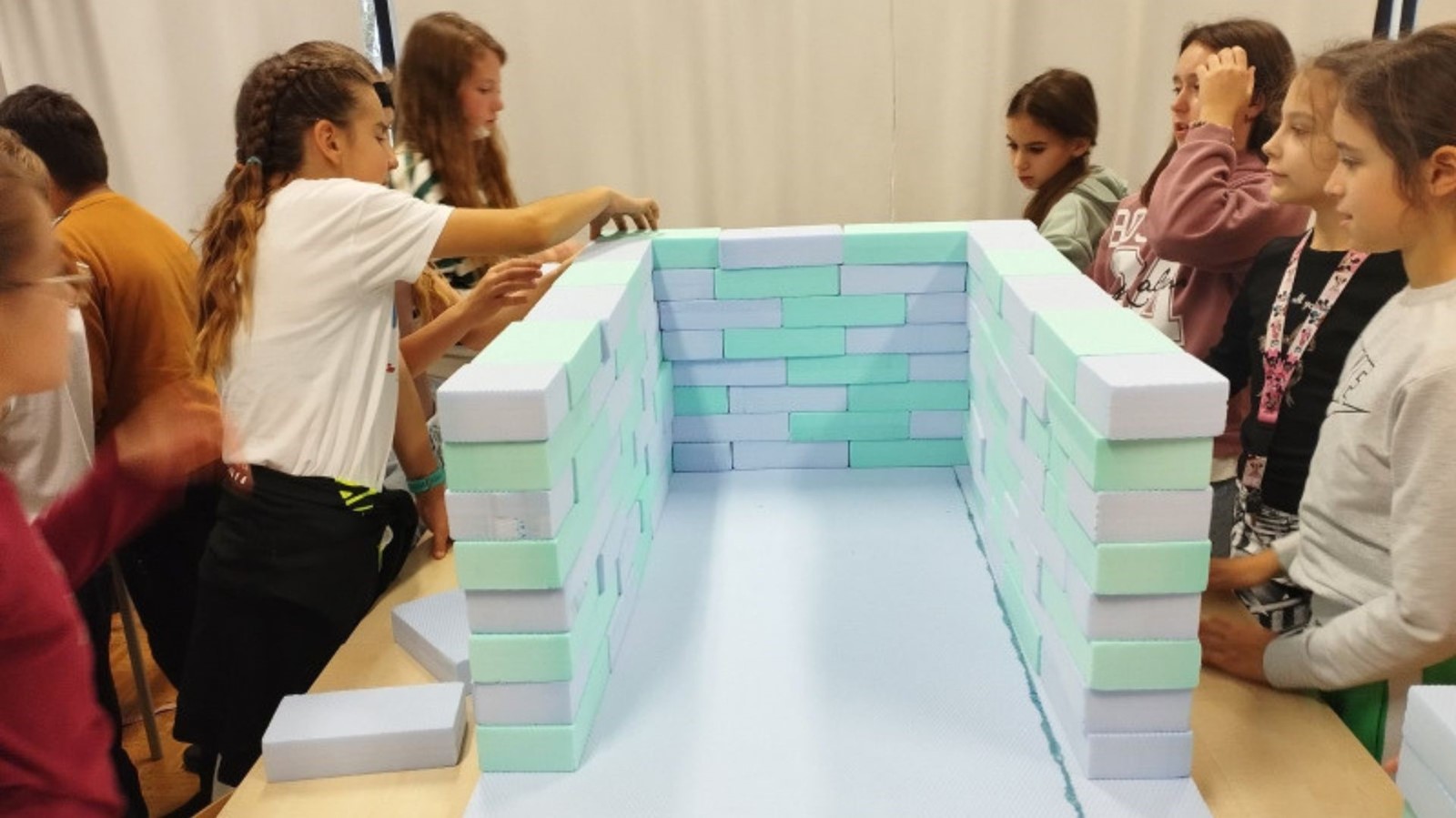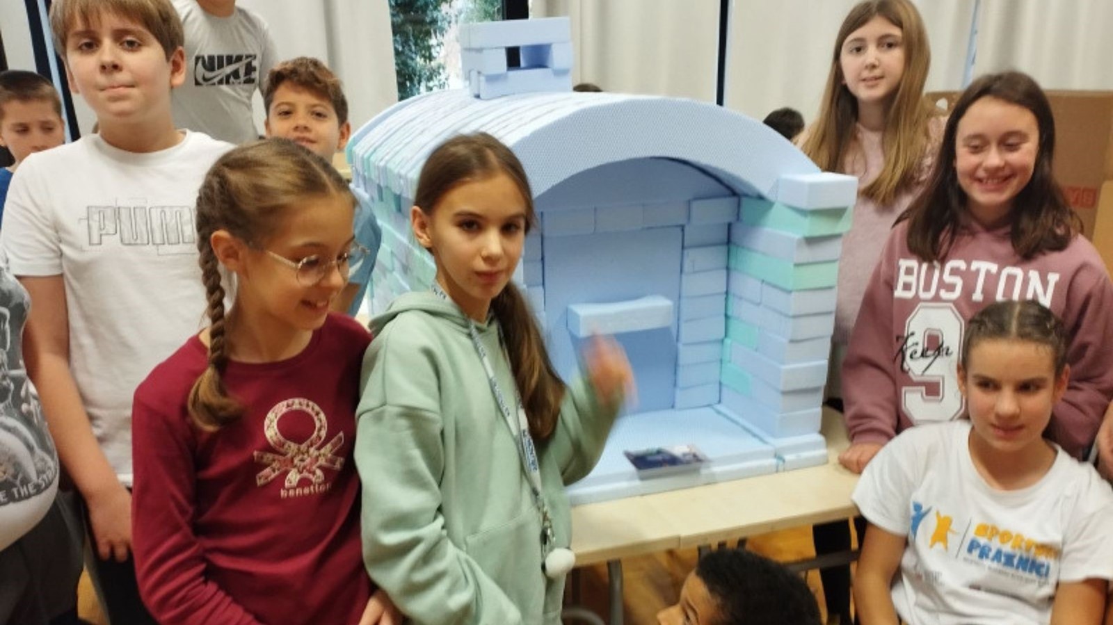 Jedna od učionica drugoga kata OŠ Vladimira Vidrića prošli tjedan bila je veliko gradilište, a materijal za gradnju učenicima razredne nastave B1 grupe Naša mala knjižnica donijeli su učenici predmetne nastave. Poseban materijal za gradnju već cijelo polugodište seli se od učionice do učionice. Povremeno se uz materijal iz školske zbornice ponese i slika moslavačkoga slikara Želimira Šiška koja prikazuje tradicionalnu moslavačku krušnu peć.