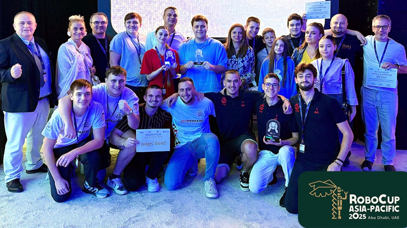 Ponovo nam stižu odlične vijesti o uspjehu hrvatskih robotičkih ekipa na natjecanju RoboCup Asia-Pacific 2025, održanom u Abu Dhabiju od 10. do 15. studenoga. Natjecanje je okupilo više od 700 natjecatelja iz 22 zemlje te više od 170 timova, a hrvatske ekipe opet su pokazale da pripadaju vrhu svjetske natjecateljske robotike.