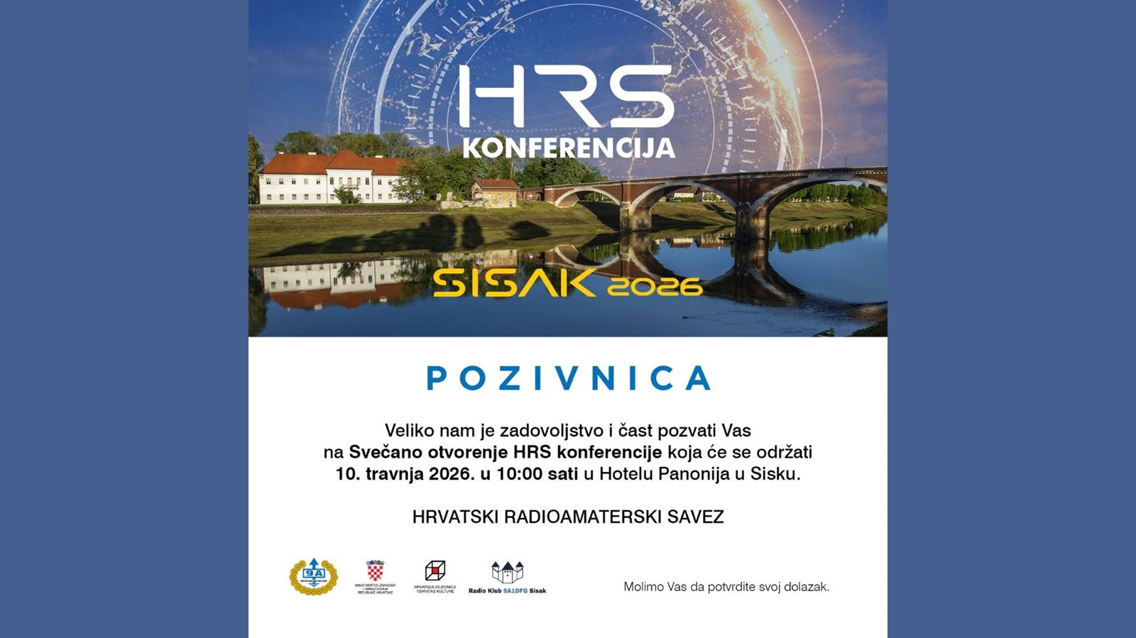 Hrvatski radioamaterski savez s velikim zadovoljstvom poziva na Konferenciju o radiokomunikacijama i STEM inovacijama, koja će se održati od 10. do 12. travnja u Hotelu Panonija u Sisku.