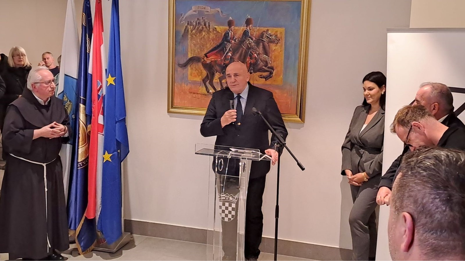 Prije samoga svečanog otvorenja izložbe, okupljenima se obratio i gvardijan Svetišta fra Marinko Vukman, rektor Bazilike Gospe Sinjske, koji je nakon pozdravnog govora blagoslovio cijelo događanje i prisutne uzvanike. Kratkim pozdravnim govorom u kojemu je istaknuta važnost ovog izložbenog projekta koji uz svoj edukativno – povijesni karakter, čuva uspomenu na Domovinski rat i trajni doprinos hrvatskih branitelja i njihovih obitelji, a što je temelj današnje moderne i suverene Republike Hrvatske, uzvanicima se obratio izaslanik potpredsjednika Vlade RH i ministra branitelja Tome Medveda, general Josip Lucić, ravnatelj Ustanove Veteranski centar, koji je ujedno i otvorio ovo događanje.