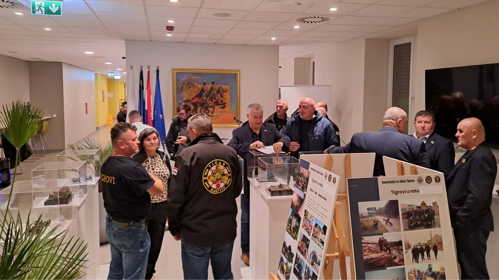 Okupljene uzvanike i goste, na početku otvorenja izložbe pozdravili su Igor Vidalina, voditelj Veteranskog centra Sinj, Marija Gaurina, predsjednica Gradskoga vijeća, Damir Gabrić, županijski pročelnik, te Nikola Županić, brigadir u miru, uime Udruge Tigar 90/91 Rakitje, koji je nakon pozdrava i dobrodošlice prisutnim posjetiteljima ukratko objasnio i novi prateći postav izložbenih panoa s temom „Domovinski rat očima Tigrova“.