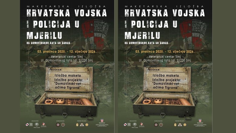 Maketarska izložba „Hrvatska vojska i policija u mjerilu – od Domovinskog rata do danas“ bit će izložena od 3. prosinca do 12. siječnja 2026. na lokaciji Veteranski centar Sinj, ulica Domovinskog rata 1a, 21230 Sinj.