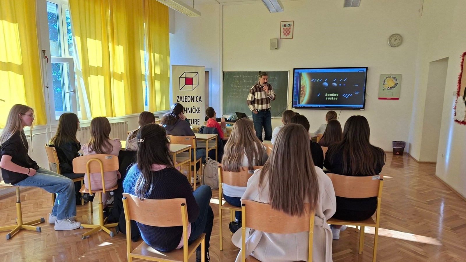 Astronomski dio programa vodio je Zoran Knez, astronom-animator udruge Zvjezdano selo Mosor. Učenici su kroz zanimljivo predavanje upoznali osnove astronomije, a poseban naglasak bio je na promatranju Sunca metodom projekcije, pri čemu su se na siguran i edukativan način upoznali s pojavama na Sunčevoj površini i osnovama Sunčeve aktivnosti.