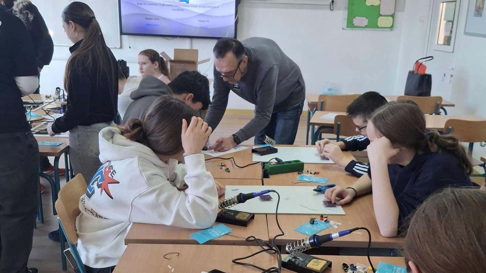Radionice su bile osmišljene prema dobi učenika u kojima su svi uživali. U radionicama četiri kutijice iznenađenja sudjelovali su učenici od prvog do četvrtog razreda i predškolarci Dječjeg vrtića Poneštrica. U prvim i drugim razredima učenici su učili programirali su robota pčelicu kao i predškolarci u Dječjem vrtiću Poneštrica koji su učili jednostavne korake programiranja dok su se treći i četvrti razredi okušali u programiranju Ozobot robota. Po prvi puta predstavljena je i radionica amaterska radiogoniometrija namijenjena učenicima petih i šestih razreda koji su sudjelovali i u radionici slika u pokretu na kojoj su radili u digitalnom alatu Canva. Učenici sedmih i osmih razreda bili su pravi mali majstori koji su izradili igricu Simon Says i uporabni predmet na modelarskoj radionici.