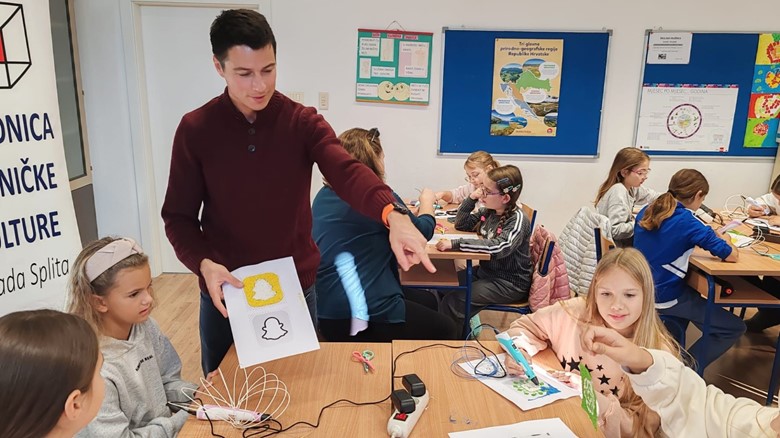 Drugoga dana održana je radionica modeliranja 3D olovkama pod vodstvom Ante Milića, predsjednika Udruge tehničke kulture „Meštri o’ tehnike“. Učenici su izradili trodimenzionalne oblike na temu društvenih mreža, umjetne inteligencije i emotikona te su kroz praktičan rad upoznali način funkcioniranja 3D olovaka i osnove stvaranja prostorne strukture. Osim praktičnog dijela, razgovarali su o važnim temama: digitalni otisak, netiquette i umjetna inteligencija.