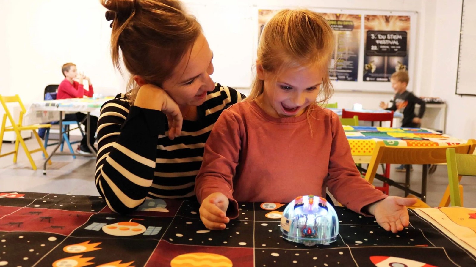 Na radionicama su mlađi polaznici programirali Blue-Botove i Bee-Botove (tzv. robopčelice) bez korištenja ekrana. Koristeći tipke na robotima, usmjeravali su ih prema željenim poljima. Kao dodatni izazov, voditelji su im postavljali zadatke koje su trebali riješiti: cilj je bio zadati naredbe kako bi se robot kretao do određene točke izbjegavajući prepreke, čime su djeca razvijala logičko razmišljanje i vještinu slaganja instrukcija. Kubo robotima upravljali su tako da su im izgrađivali stazu od pločica koje određuju smjer kretanja, pritom se upoznavajući s funkcijama, programima i petljama kroz jednostavne i logične korake.